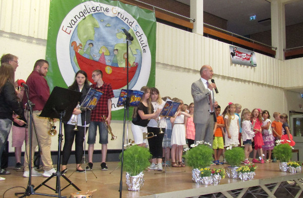 Bürgermeister Bert Spilles, Vorsitzender des Stiftungsvorstandes, dankte in seinem Schlusswort den Kindern für ihre großartigen Darbietungen, den Chorleiterinnen und dem Bandleiter für ihren Einsatz. Erika Meyer zu Drewer dankte er für die Organisation der Veranstaltung und Klaus-Jürgen Pusch für die musikalische und technische Unterstützung. Als Dan-keschön übergab er Präsente an die Damen und für die Chöre gab es kleine Stärkungen.